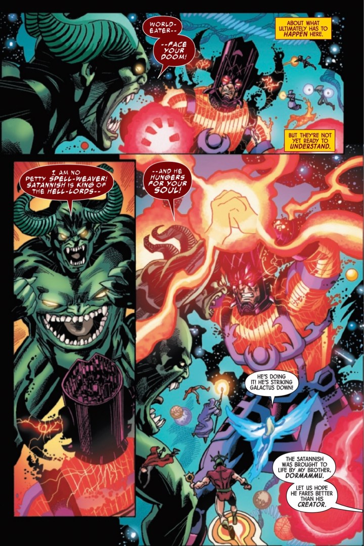 The only good thing about Galactus sating his hunger in another dimension was that the Marvel Universe was safe. Well, he’s powered up and back in the Marvel Universe and all of space and time is in dreadful danger!