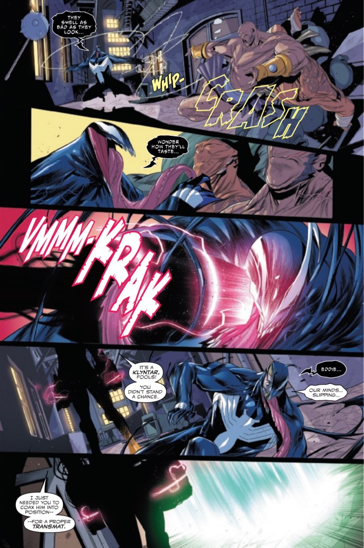 After a busy few months, Eddie Brock and the symbiote are back together, but their union isn’t so perfect anymore… Meanwhile, the galaxy’s fiercest monster hunter is headed to Earth with a taste for klyntar… PLUS! The Origin of Lady Hellbender!