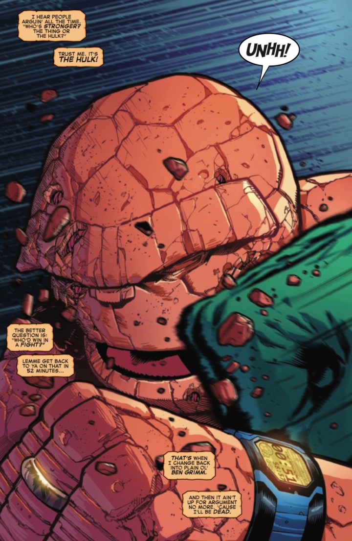 The clock is ticking down. The moment is almost at hand. That do-or-die instant where Ben Grimm will either find the will to win – or be annihilated by the fighting-mad Immortal Hulk!