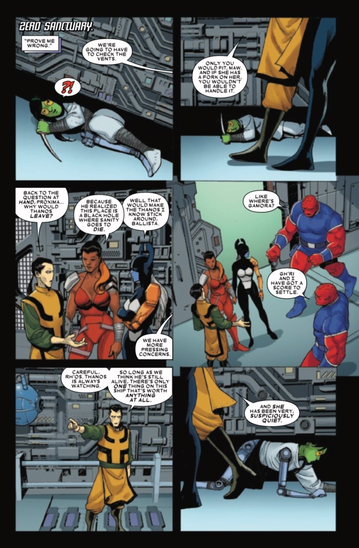 As Butcher Squadron launches a rebellion against the Mad Titan, will Thanos be able to quell their revolt? Or will he have to turn their space station into a bloodbath in order to hold onto power?