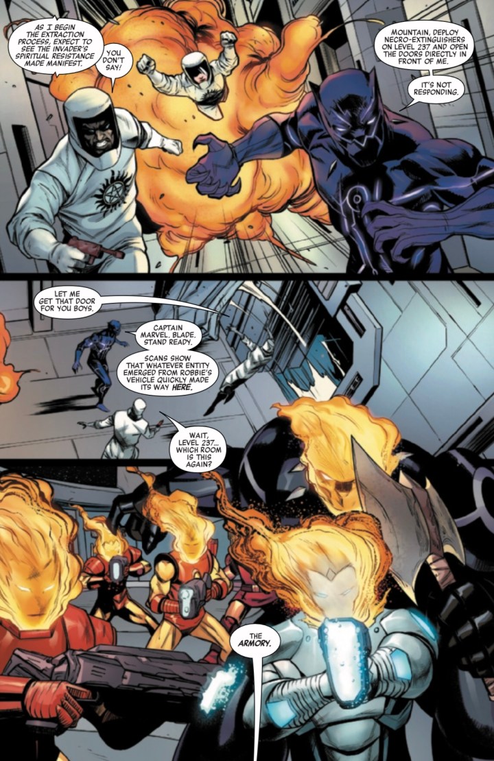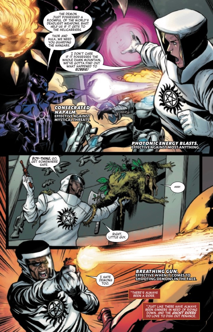 It’s Ghost Rider vs. Ghost Rider in a wild race through hell, while the Avengers have to fight for their lives against their own Celestial headquarters, which is now possessed by a rather shocking, rather murderous hell-damned soul!