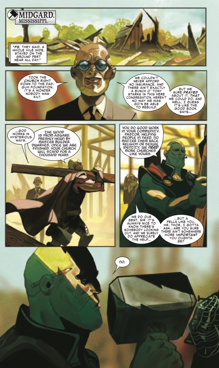 Thor has disappeared! That’s all we can say without spoiling the epic, Midgard-shattering conclusion of WAR OF THE REALMS – but trust us, you won’t want to miss this issue, which is the kickoff of Jason Aaron’s final Thor story!