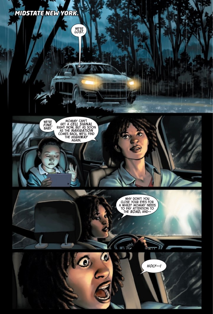 Immediately out of the gate, the first aspect of the anecdote any reader will notice is how exceptionally amazing Jesús Saiz’s art is in each panel and every splash page. Saiz has some of the most thorough, crisp, bright, and vibrant art of any artist in the industry right now. This reviewer fancies a more realistic feel to his comic and Saiz doesn’t disappoint. His supernatural colors are raw, rich, and saturated while every character seems incredibly polished, precise, and flawless. From a road phantom to an otherworldy, ancient demonic caretaker, readers will certainly be awestruck by the talent that leaps off the page.