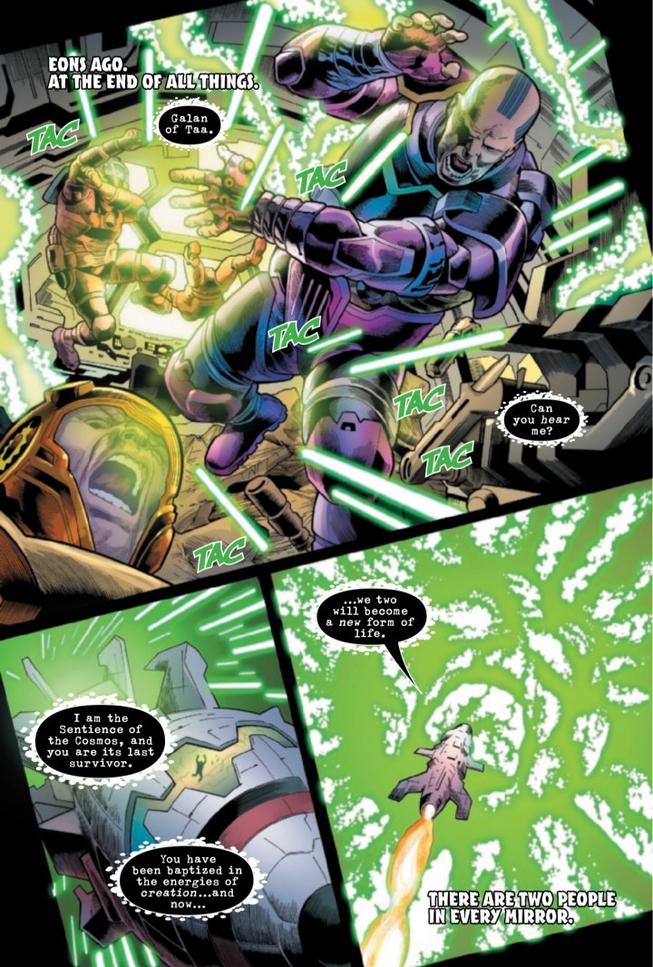 Ewing has been scheming an orchestrating something much bigger since this series was presumably pitched to editorial. Each issue has gradually broadcasted bits and pieces of this cosmic theme while giving the average aficionado the horrifically, action-packed explorations of this green behemoth. Furthermore, Ewing has never been afraid to undertake a unique or exotic concept. A writer can’t simply render new ideas up from one week to the next on the spot. This has to be thoroughly aligned, strategize, calculated, and justified every issue.