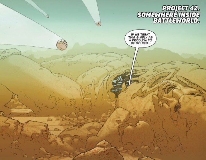 The second focal point of the issue was the schemes beginning to divulge from the surviving life raft combatants. Both Reed’s are observed working together to demise a solution, which is reminiscent of the Council of Reed’s from Hickman’s FANTASTIC FOUR run. Readers, this plot thread will also be huge later in the story. Hickman understands the multiversal harmony between Reed and Victor. It’s literally transversed space, time, and reality. These two are forever intertwined and Hickman continues to hammer home the dynamic relationship these two characters have, even ones from other multiverses. Hickman may be pushing the agenda that these two are THEE biggest rivalry in all of comics and that seed was sowed within his FANTASTIC FOUR run and further cultivated throughout this universal shaping event. So, tuck this one away for an issue or two from now and be prepared for the Reed’s plans to come to fruition soon enough.