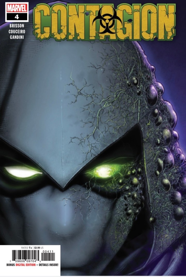 As we have only one issue left things look pretty bleak for our heroes. And unfortunately, this issue looks pretty bleak too. That is unless you like different colors for your backgrounds. If so, you’re in luck. We’ve got purple, orange, yellow, etc…. This book screams what unfortunately most all weekly books do. “I’m rushed!!'” Nothing is more telling of that than backgrounds with literally nothing in them. Some panels at least have some fungus spores in them. The art is also so muddy in spots that I had a hard time telling who I was even looking at, unfortunately.