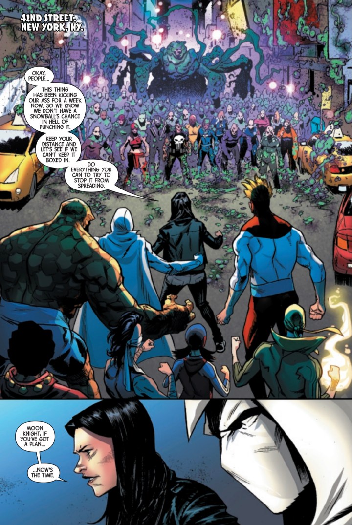 A seemingly unstoppable force has invaded the Marvel Universe, and it’s going to take every hero the streets of New York has to stop it! A strange substance is taking over heroes and citizens alike, draining them of their life force, stealing their knowledge and abilities, and neither science nor magic can stop it! Where did it come from? Can anything destroy it? And who will fall to its awful, overwhelming power?