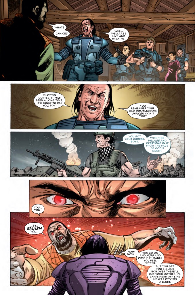 By the end of the book, Clayton doesn’t fell like he has any purpose being involved in this Absolute Carnage event; he himself has never hosted or even encountered a symbiote before, he’s only coerced into this because the Weapon Plus program needs a “Hulk” to contain Carnage, and by the end, he leaves and the book makes it very evident that their won’t be any continuation of Absolute Carnage in Clayton’s future. He’s done.