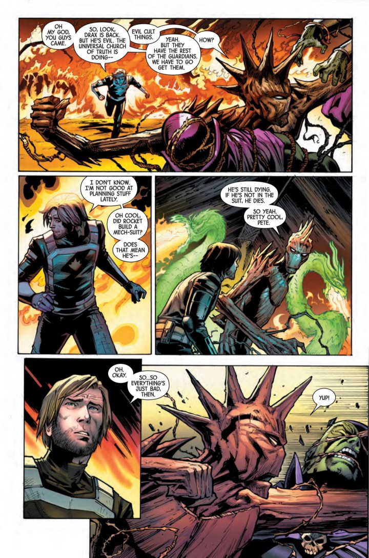The Universal Church of Truth is ready to raise their new messiah and beckon the cosmos into a new era! As his body begins to shut down, will Rocket be able to stop them and save the Guardians in his final moments? Or is this the end of the galaxy as we know it?