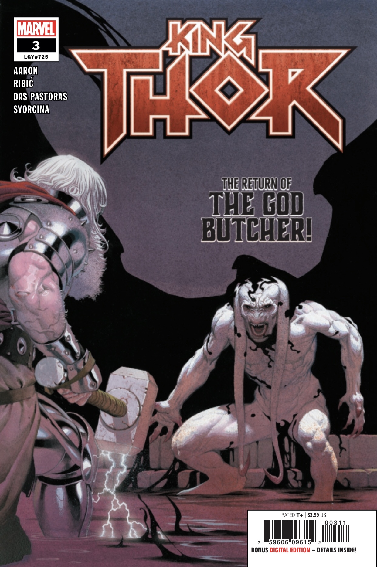 All-Father Thor believed the fight with his brother Loki – now empowered by the Necrosword and more bitter than ever – would be the bloodiest fight of his long life. But he’s about to be proven wrong in this week’s all-new KING THOR #3 by Jason Aaron. Gorr the God Butcher has bided his time for millennia. Now, it is the end of all things. Let’s fly into this issue to see if this is truly the end of the last of the gods.