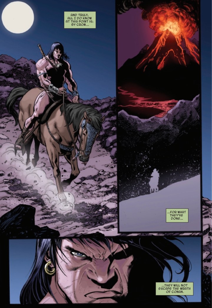 After witnessing a heinous crime, CONAN hunts down a mysterious demonic sect. But whatever his intentions, Conan may well doom the nation if he doesn’t solve the mystery in time! An epic quest across the Kothian Hills and a surprise twist! Plus: The concluding chapter of the all-new novella “THE SHADOW OF VENGEANCE”!