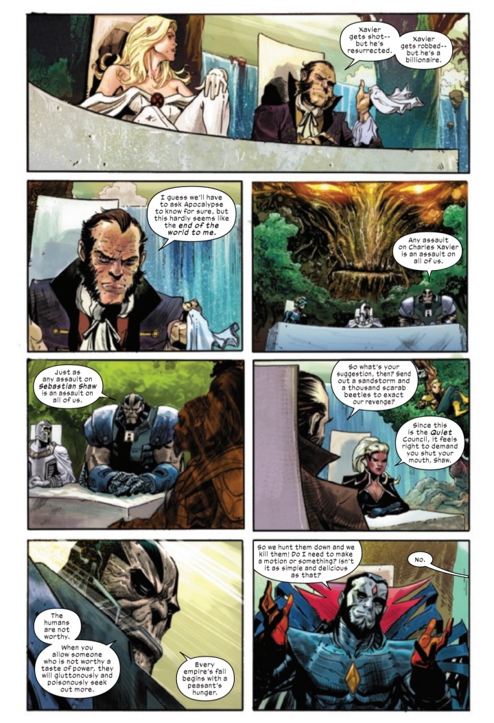 Domino is back and Charles in alive. But can Xavier’s new X-Force stop this new human force bent on mutant destruction? Will humanity ever leave mutantkind alone? And, can Krakoa finally stop letting people on the island already? Black Tom needs to work on the security protocols… am I right? Find out all this and more in this week’s all-new issue.