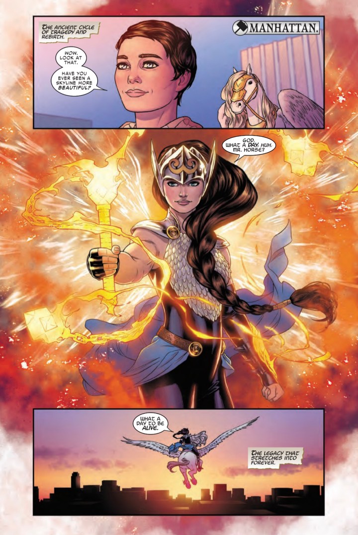 Sure, Aaron has written this character for over seven years now, but he completely gets the character and punctuates that vividly throughout this culminating issue. There may be no other character with more heart and vigor than the God of Thunder. A character that lives in the moment, throws caution to the wind and oozes passion out of his very pores. There is no other person you’d want standing beside you in a fight and no other warrior you’d want watching your back. However, with all that exuberance and vitality, Thor is still a God that has feelings and wears is compassion and heart on his sleeve for the world to see. He’s emotional, raw, and as readers learn before the issue ends, he’s the literal Thunder that keeps the darkness at bay. After reading this issue, my hope is that all comic fans see Jason Aaron’s Thor as all of the above and so much more. It’s because of the above that this reviewer has fallen hard for this run and holds Thor with such high esteem. And fans, this issue merely accentuates that very premise tenfold.