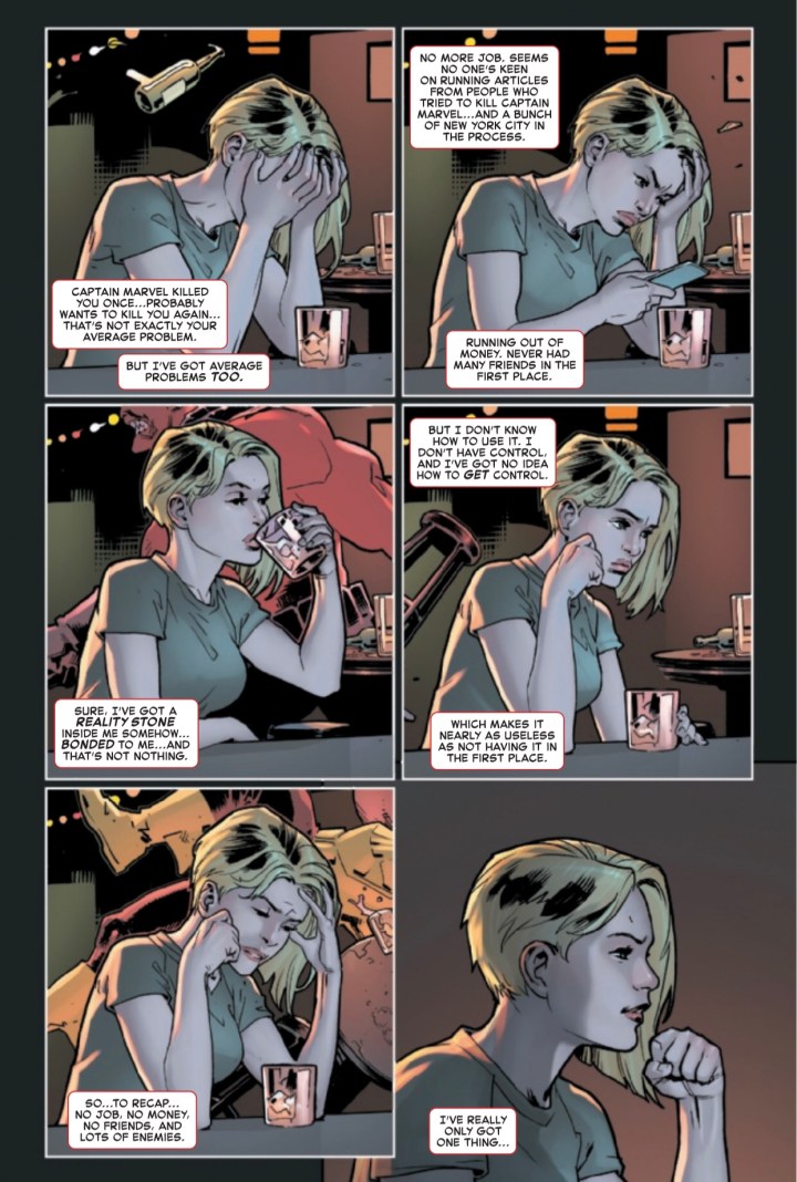 Ambitious reporter Ripley Ryan rocked New York City when she became the hero STAR, adored by everyone. But in truth she was Dr. Minerva’s attempt at a Kree-human Super-Soldier. Desperate for the strength to control her own destiny, she tried to kill Captain Marvel – and failed. Ripley was left, defeated and powerless, in the Raft…or so she thought. The Reality Stone has found her, and now no prison can hold her. You thought you knew what the Infinity Stones were capable of. Think again.