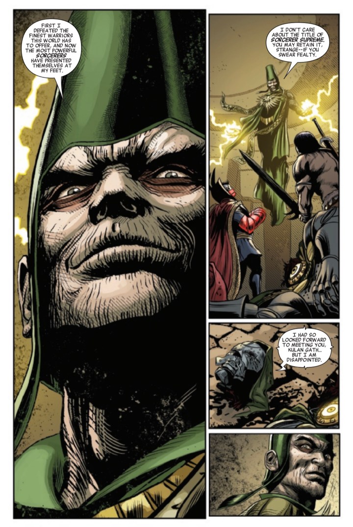 Folks, we won’t mince words. Kulan Gath has got to go. If Conan The Barbarian, Doctor Strange and Doctor Doom can’t do it, then it can’t be done. Plus, what is the fate of Kulan Gath’s guest, Doctor Voodoo?