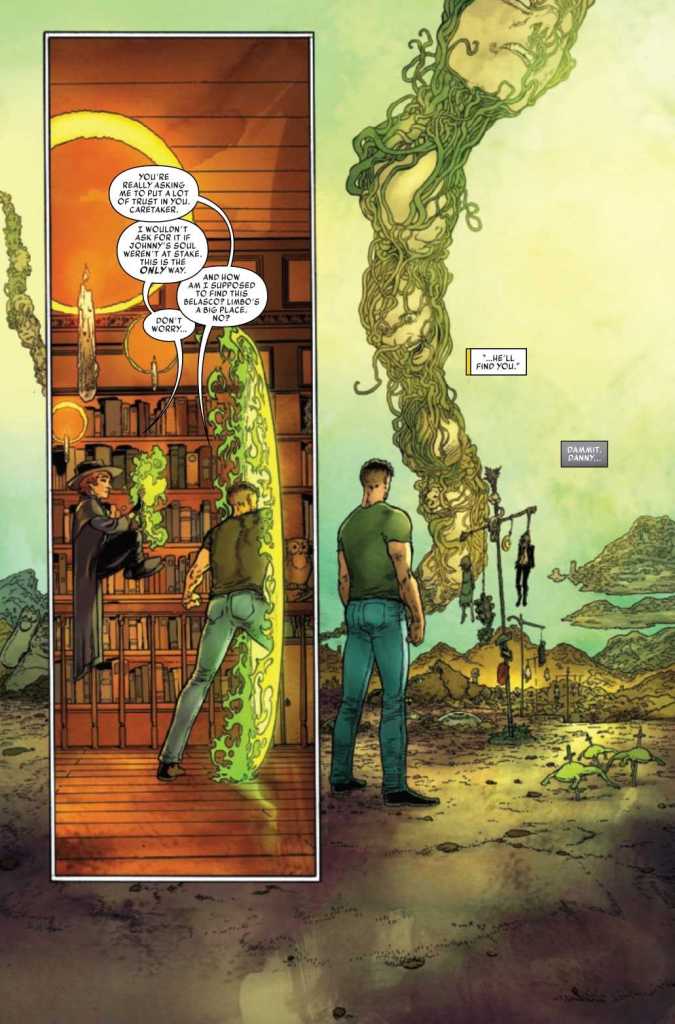 We open this issue at Caretaker’s pad. Danny Ketch, last issue agreed to do everything he can to help with the turning evil (possibly) Johnny Blaze and his reign of terror.