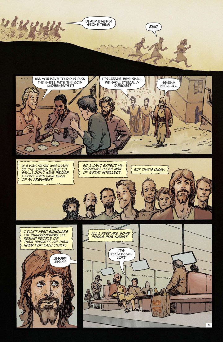 Any reader that can’t look past the reality of this story and let Russell’s imaginative narrative speak to them in a profound way is truly barking up the wrong tree. This issue, as well as the series, has been extremely well written, fascinating, hilarious, and draws the reader into the story making them feel involved in what is overly familiar to even a Chr-Easter or anyone whose dabbled in Sunday School as a child.