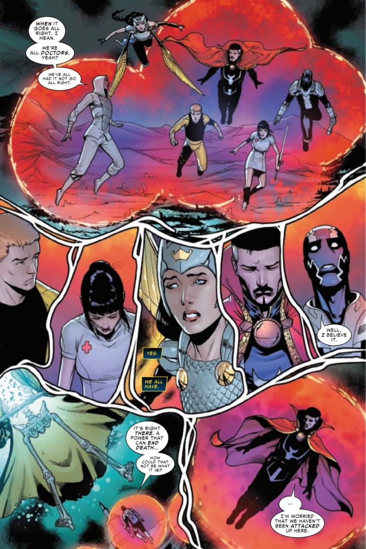 Valkyrie teams up with Marvel’s Mightiest Medics to save the life of the ultimate patient – Death herself! With a universal force on the cosmic operating table, the end of everything is one slip of the scalpel away… but has one of Jane’s surgical team forgotten their Hippocratic Oath?