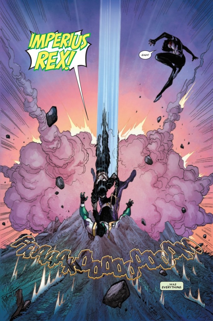 The issue opens with Silk and Amadeus Cho looking at the City of Pan with a smile on their faces and while Amadeus is not saying much, we get some recap narration for those jumping on here right before it all goes to hell… in the form of Namor!