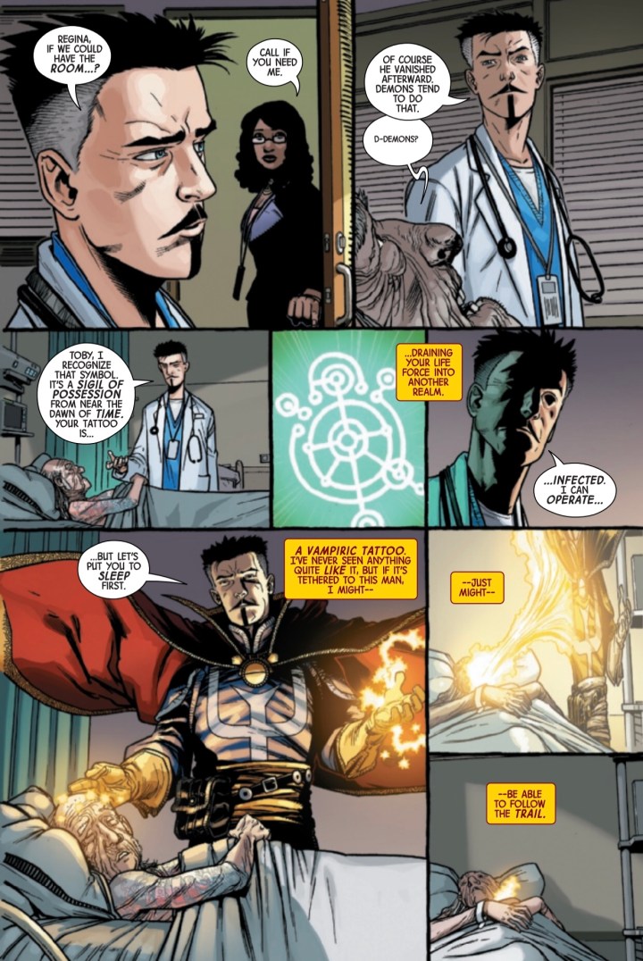 Tattoo removal isn’t in a surgeon’s job description, but when one man’s heavy metal tattoos begin coming to life Doctor Strange will have to make an exception! With the clock ticking down rapidly, will Doctor Strange be able to save his patient-or himself? Find out as Doctor Strange gets drawn into the diagnosis-literally!