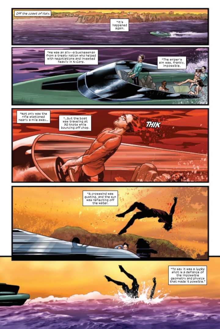 Well X-fans, it seems there are some things you just can’t shake. There are some demons that are hard to overcome. And in this issue, Ben Percy takes the time to point out those demons that Colossus and Domino are still dealing with. Now, what I thoroughly enjoyed about this issue was the angle that Percy took that may have been overlooked by readers. What I’m referencing is the resurrection protocols and it’s effect on the mutants mentally. Sure, Domino wasn’t resurrected but the mental trauma that is associated with dying, being tortured, or in Domino’s case skinned alive, doesn’t really leave you. Colossus is still struggling with his demons from Russia and so is each mutant every time they die. The mind is a powerful thing and Percy uses this issue to hit on the idea that even with all there powers and abilities, they still fear even in a haven designed specifically for their kind.