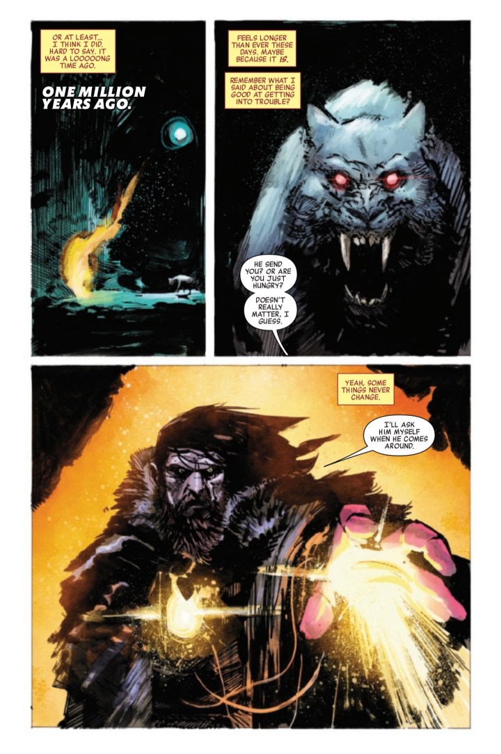 Special Oversized Issue! Trapped in an icy cave at the dawn of time, Tony Stark has lost most of his armor and a good chunk of his mind. And tonight when the sun goes down and the devil comes round again, Iron Man may very well lose whatever’s left of his soul. A dark tale of hell and ice and iron, unlike any Golden Avenger story you’ve ever read, featuring the gorgeously gritty visuals of guest artist Gerardo Zaffino (CONAN THE BARBARIAN).