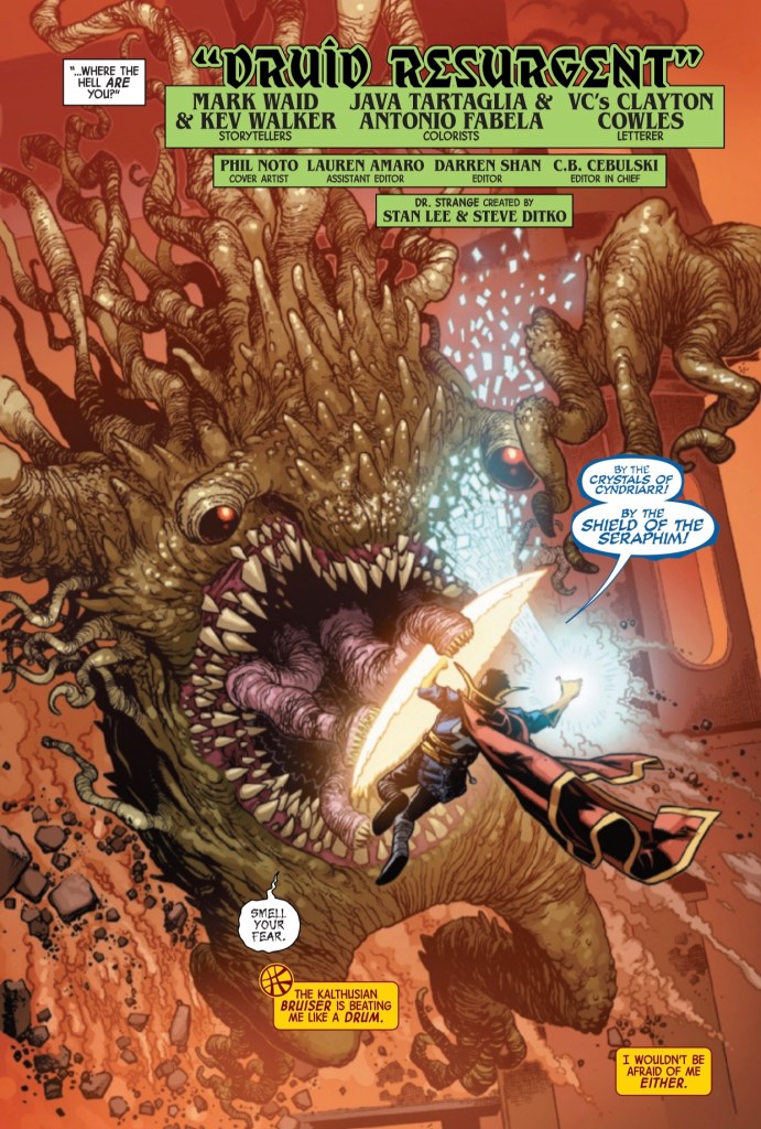Although this issue doesn’t push the overall story forward, we get a nice glimpse at Dr. Strange’s relationship with the hospital and a history lesson for Anthony Ludgate, the once Avenger, Druid.