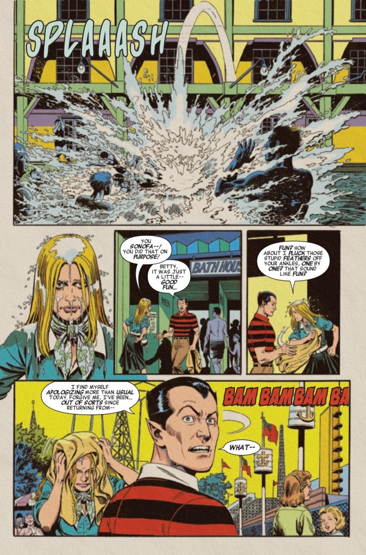 It begins here – a series of specials that show us Marvel’s greatest characters from the Golden Age to today, all through the eyes of ordinary people! Project curator Kurt Busiek (Marvels, Astro City) has brought together an amazing assemblage of talent to bring you a total of eight new and unusual viewpoints on Marvel history and Marvel heroes, two per month for the next four months. To kick it all off, best-selling novelist and Emmy Award-winning TV writer Alan Brennert (L.A. LAW, TWILIGHT ZONE) and superstar artist Jerry Ordway (All-Star Squadron, Crisis on Infinite Earths) to tell a story of Marvel’s debut superstar: Prince Namor, the Sub-Mariner. It’s 1946, and the boys are back from World War II. But they haven’t left the battlefields behind, as reporter Betty Dean discovers when she and Namor reunite for an outing at Palisades Park, only to find themselves under attack. Also featuring the All-Winners Squad. A dramatic, unexpected and revealing tour through the Marvel Universe by a cornucopia of amazing creators.