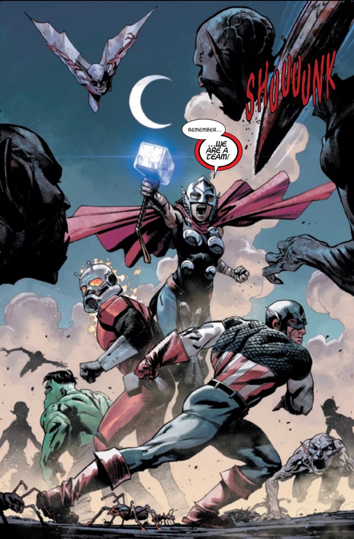 The AVENGERS have assembled! But so has BARON BLOOD and his legion of vampires! The saga continues with more revelations and a SURPRISE reappearance of a hero of the Wastelands to guide the new team!
