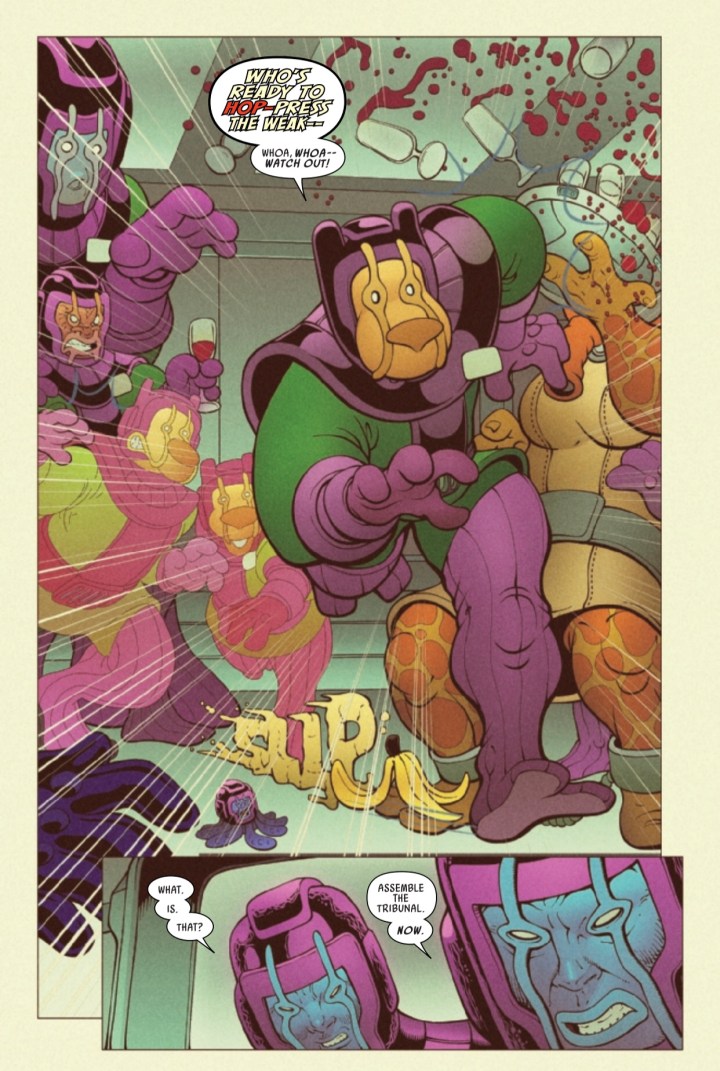 Spider-Ham might finally know who is causing all this ruckus in his Universe! But is Ham alone enough for a meal? Wait, what? Let’s try that again: BUT IS HAM ALONE ENOUGH TO STOP (REDACTED VILLAIN NAME)?!
