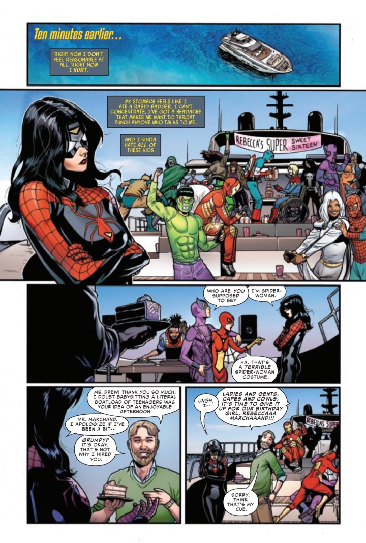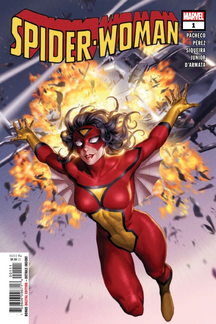 Jessica Drew hasn’t been feeling like herself lately (she’s not a Skrull, we promise). When the angry, irritable, and unwell Spider-Woman takes a simple security gig to help get back on her feet, she finds herself besieged by unknown forces out to destroy everything around her. What’s wrong with Jessica? Just how DID she get this job? And who are these violent lunatics who keep trying to blow her up? WHO CARES? Does Spider-Woman have someone to punch? THAT’S ALL THAT MATTERS. An explosive new series that pushes Spider-Woman into new heights of action and adventure from the mad minds of Karla Pacheco and Pere Pérez, this is the Spider-Woman book you’ve been waiting for!