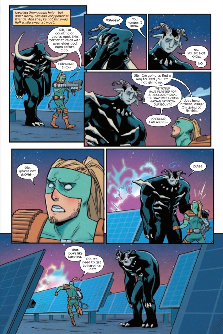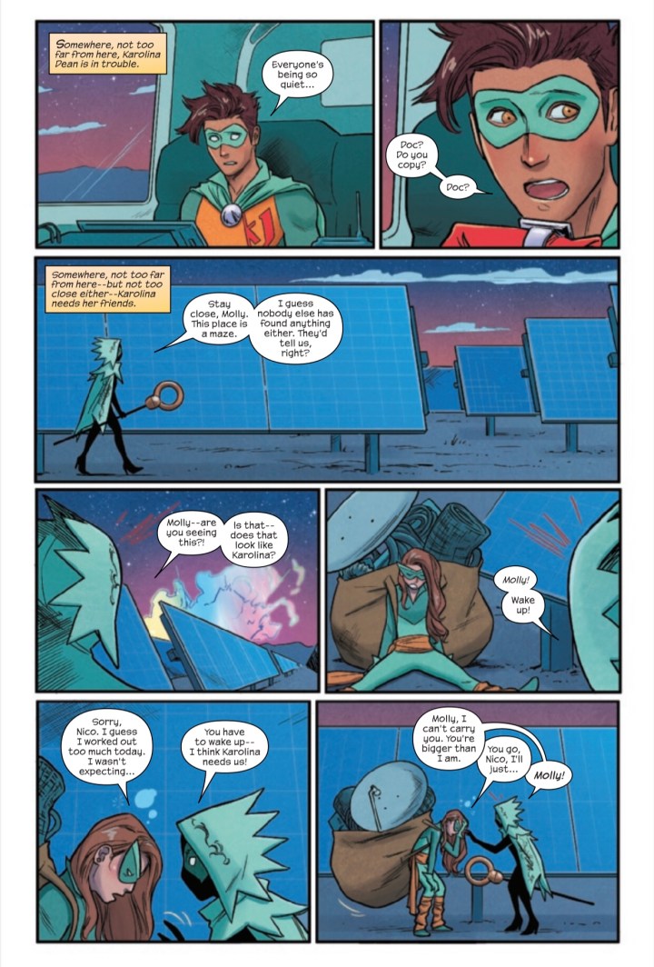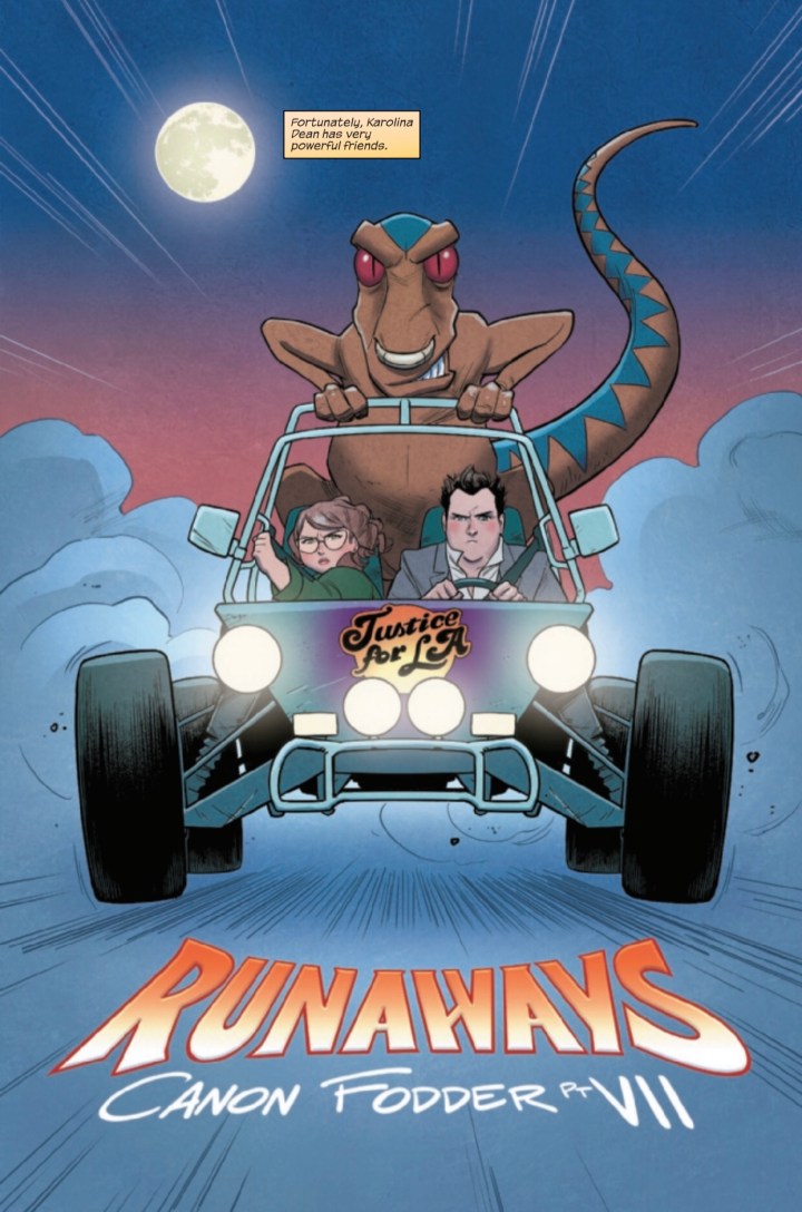 The most battle-heavy issue of RUNAWAYS (and possibly ANY COMIC EVER) is here and you won’t believe your eyes. Doc Justice and the J-Team (i.e. the Runaways) has their most dangerous mission and it does not end well for anyone. The Runaways end this issue very very different from where they started it.