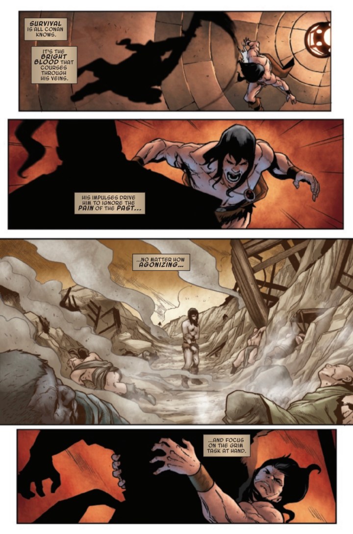 This is not Jason Aaron’s CONAN THE BARBARIAN but it is highly enjoyable and packed with a thoroughly planned and well-organized backstory that Zub quickly establishes to ensnare his audience. All this reviewer can think of as the anecdote unfolds is, how were all of these individuals chosen for The Crucible? And, who’s the secret assassin hiding in the mix? Truthfully, my first guess didn’t make it!!! So, I got my theories now but what does this secret assassin gain by doing any of this? Either way, I’m all in and stunned by how much I’m enjoying this comic without it really feeling like a CONAN comic to me.