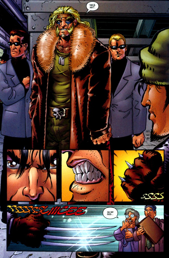 But fun times are over as Sabretooth shows up and we get a small brawl. Of course, if you knew Sabretooth, no brawl is small. So the chase begins…