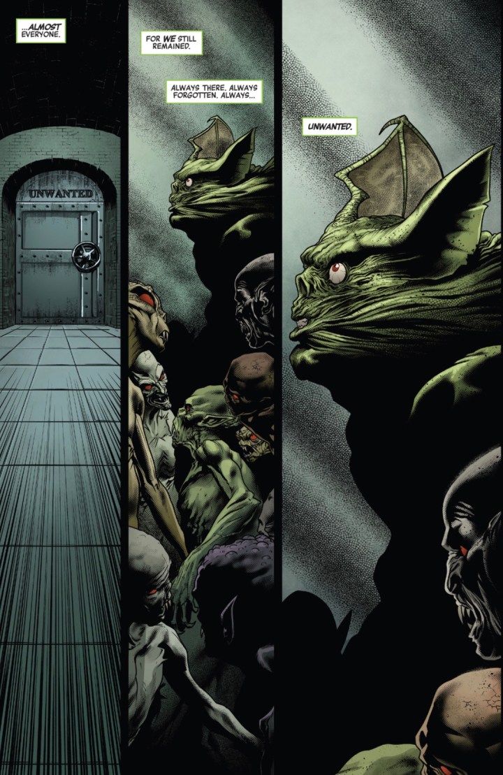 Readers, if you’re searching for an informative issue telling you what the heck is going on in this story, this is definitely it. Tieri answers most of your questions gives the leading “unwanted” villain/creature a name and explains his “budding” desires. However, I found myself more interested in the beginning pages of the history involving J. Jonah Jamison and this mysterious man than I did with the unveiling of the villain and his driving purpose. Comic fans, there is no reason for a mystery man at the beginning of the issue that’s only about two pages of the entire book to draw my attention more than the last two-thirds of the comic. Likewise, I also left questioning the connection between the two. Tieri ends the narrative without connecting the beginning and the end together. It’s just missing a… purpose, point, or direction. There’s no connective tissue other than showing readers that the Unwanted have been there for decades. Hopefully, as this series wraps up, Tieri can connect the dots for readers and give this reviewer more of the history that’s winning me over.