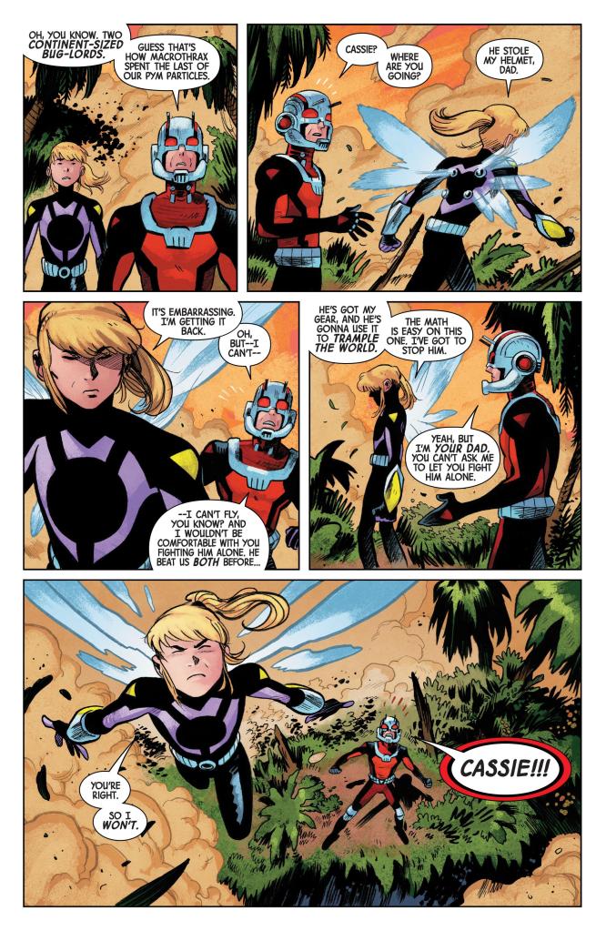 With Cassie off being a hero, what is Ant-Man to do? Well, he gets grabbed (tongued!?!) by Ve’Trock (no the Betrayed) who talks to Scott as he is dying. I was waiting to find out the former Bug Lord was two days to retirement, but instead, it tells Scott that the World Hive sees and knows all and that Scott is a good guy. He’s worthy! It’s one of those moments that puts a smile on your face, but you know that Scott wishes some big hero was listening in!