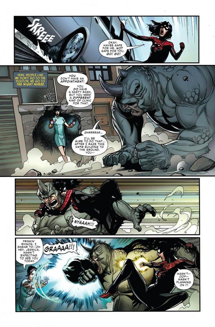 Spider-Woman discovers the origin of her illness. Spoilers: It wasn’t bad sushi or that cold everyone at the office has. What does Jessica’s illness have to do with the daughter of her old nemesis Otto Vermis? And how does a shipment of black-market spiders fit in? Jessica Drew is fighting for her life while someone is pulling the strings of her web…BUT WHO?