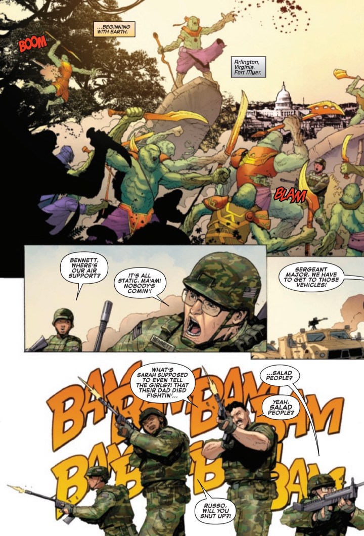The invasion has made landfall! Captain America stands on the front lines – but when the threat goes global even he won’t be enough to stem the tides! Will Captain America be able to find allies willing to fight alongside him – or will he fall in the face of this intergalactic incursion?