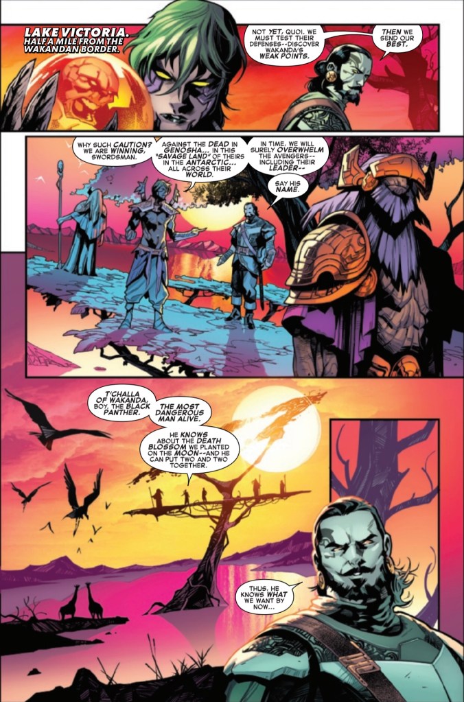 We then get to the meat and cheese of it all when we find out precisely what Quoi is after and who he has to get through to get it. It’s a big moment, but again, it didn’t have me any more excited. No, the excitement comes afterward when a visitor arrives in Wakanda, and then we find out exactly who is helping Hulkling and why. This issue is all about family, and I will give Slott and Ewing credit; it was set up earlier in the issue by Reed in an excellent, subtle way.