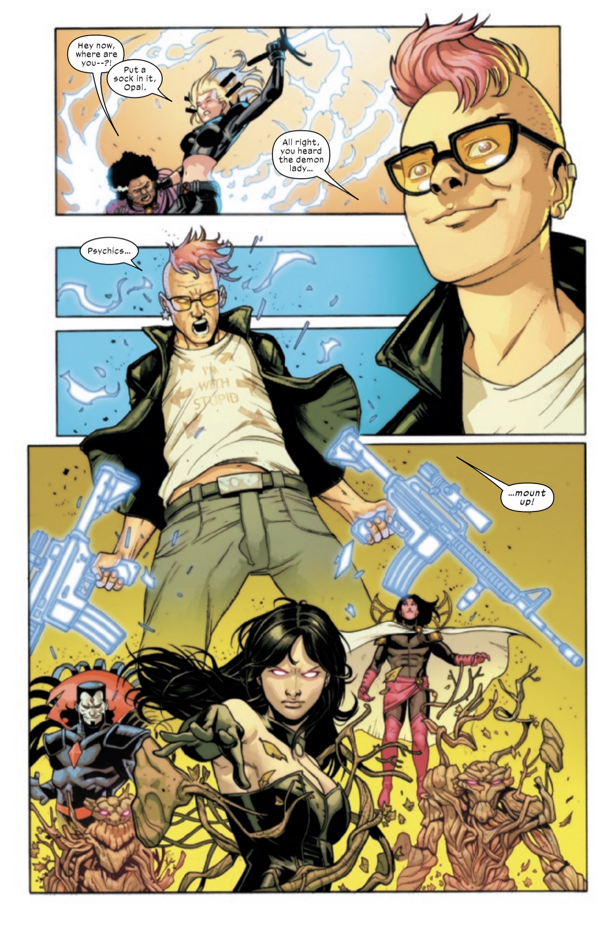 The Scarlet Witch strived to undo a mistake from her past by restoring millions of dead mutants on Genosha. However, what appeared from the dead were millions of mutant zombies! Therefore, when the Cotati touched down on Genosha, the mutant zombies and the Cotati began an all-out onslaught. Nonetheless, as the fight unfolded, a team of mutants led by Angel and Magik went on the attack against both factions with the help of the Hordeculture (otherwise known as the Golden Girls of Botany). However, as issue two came to a close, it emerged as though Magik organized some reinforcements! Let’s jump into EMPYRE: X-MEN #3 by Vita Ayala, Zeb Wells, and Ed Brisson while we get “psyched” for this penultimate issue.