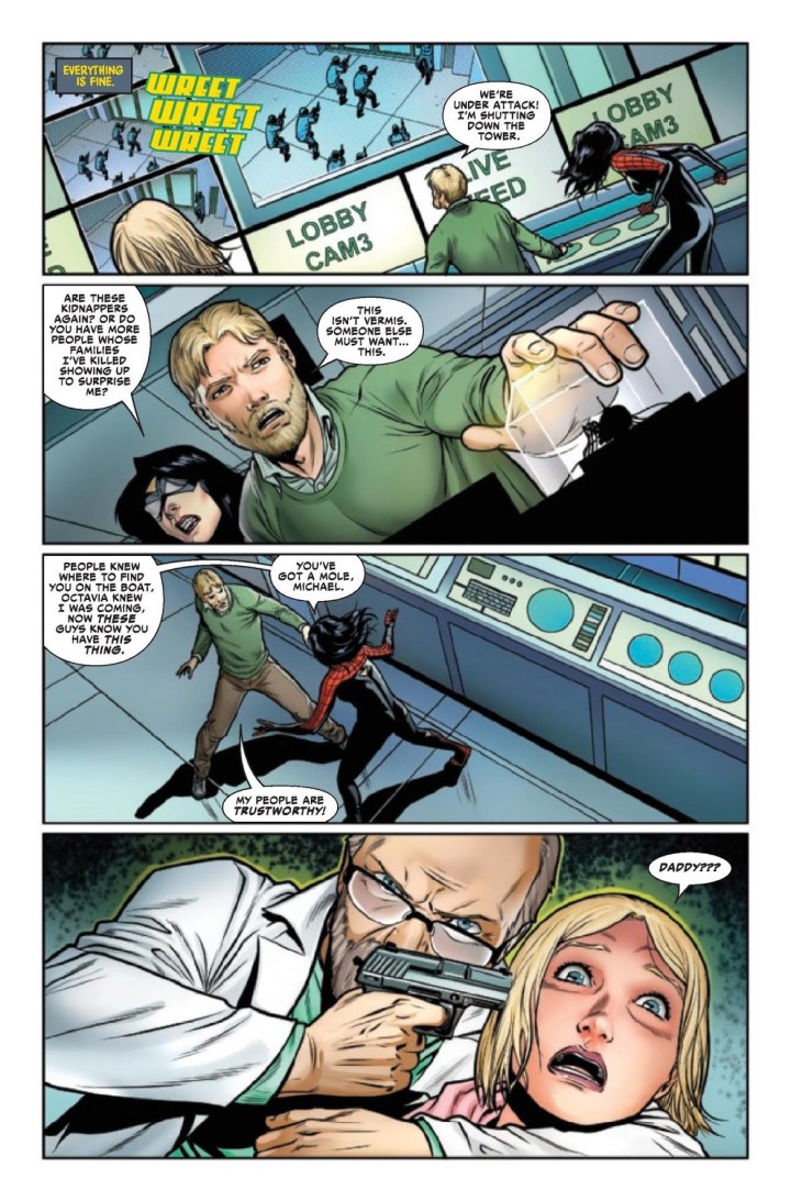 With another all-out attack on her client, Spider-Woman is really beginning to regret taking this gig. As the tables turn yet again, a quick escape leads to the last place on Earth Jess wants to be. The shocking return of someone from Jess’s past ups the ante and throws Spider-Woman’s life into chaos!