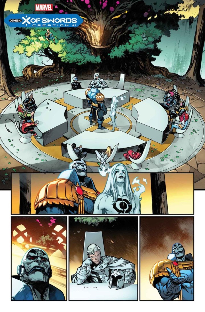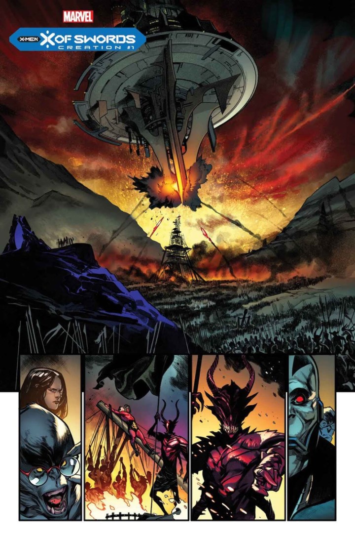 It all begins next month in X OF SWORDS: CREATION #1, and you can get your first taste of the action in this spellbinding new TRAILER , showcasing artwork by some of the industry’s top talents including Pepe Larraz, Mark Brooks, Leinil Francis Yu, Russell Dauterman, Adam Kubert, and more. Listen closely as Saturnyne, Majestrix of the Omniverse, foreshadows all the dramatic twists and turns that await in this grand saga.