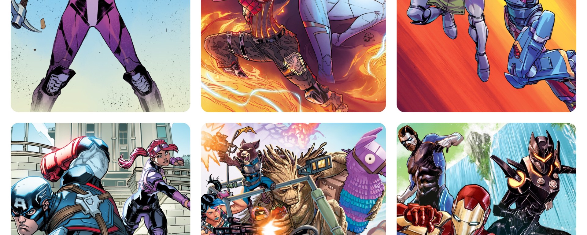 Some of the industry’s top artists including Joe Quesada, Ed McGuinness, Sara Pichelli, Russell Dauterman, and more will showcase Fortnite favorites like Blaze and Carbide side by side with the Avengers, Guardians of the Galaxy, and the X-Men!