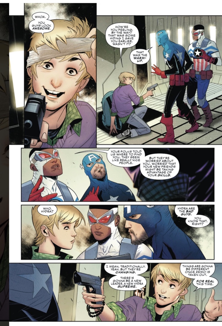 The Natural, or as Sam and Bucky come to learn from his parents, Jr., has some sense of morality. As psychotic as he may be, being raised by Captain America super fans at least gave him an idea of right and wrong, good and evil. Having Hydra come in and manipulate him, as talented as he is, makes for the perfect weapon, but we see the Captain America influence does not wane. Jr makes his own costume and it raised the question, Where is Patriot in the Marvel Universe? Could the Natural turn good? And make his way into The Champions or another group? The last Patriot, Rayshaun Lucas, was last seen as Falcon’s sidekick. Could Jr. be Bucky’s sidekick? Both coming from a darker past, could help each other emotionally and help each other strive towards becoming better heroes.