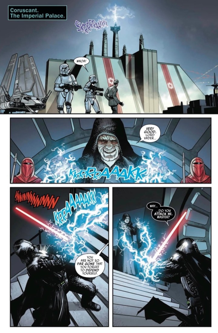DARTH VADER failed to turn his son, Luke Skywalker, to the dark side of the Force. No…Luke was too weak to join his father in overthrowing EMPEROR PALPATINE. Vader sought revenge against those who hid Luke from him for all of these years… and in doing so nearly betrayed his master. It did not go unnoticed by Palpatine… time for Vader’s next lesson.