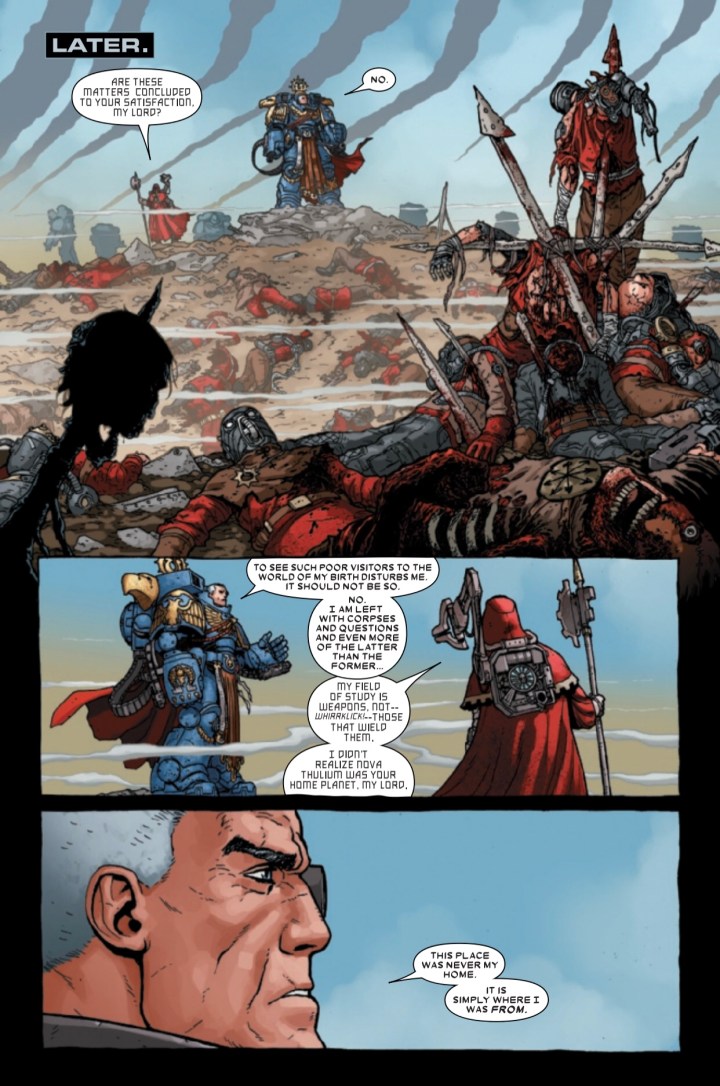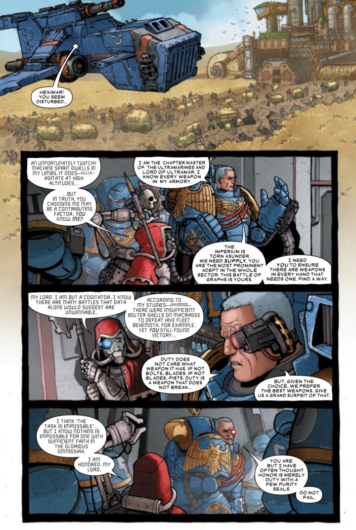 This all-new tale is essential reading for 40K aficionados, as well as the perfect primer to the world of WARHAMMER 40,000 for those new to the universe. See the Ultramarines in glorious combat, the strife between the worlds of the Imperium, and witness the larger than life characters who preside over it all! This is but the first foray into the larger darkness that is to come from Warhammer and Marvel Comics. Be prepared.