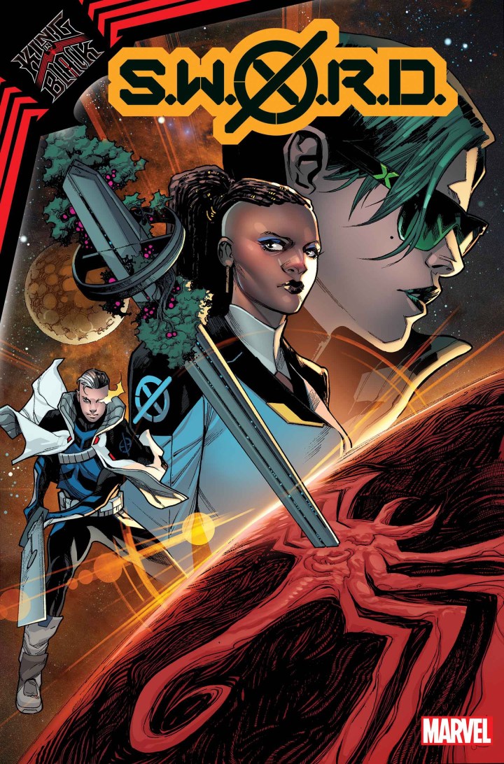 The S.W.O.R.D. station is thrown in at the deep end of a planetary crisis as Krakoa battles the KING IN BLACK! While a cross-division team take on latex dragons from outer space, Abigail Brand prepares a deniable operation all her own. What is PROTOCOL V – and can the Earth survive it?