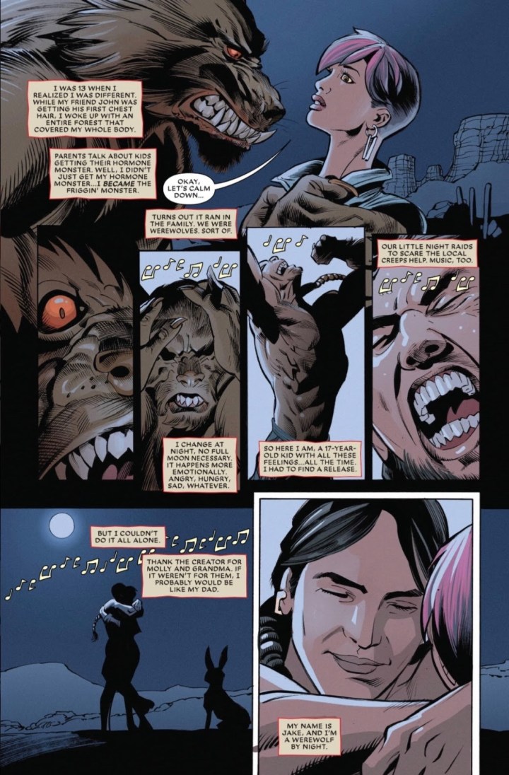 A new Werewolf by Night is prowling the Southwest, but all is not as it seems! A young man, a family curse, and an unholy experiment prove a dangerous combination for a small town in Arizona. All young Jake wants is to protect his people, but who will protect him from the monster within? Taboo of the BLACK EYED PEAS and Benjamin Jackendoff team up with Scot Eaton to tell an epic tale of righteous fury and incredible transformation in the Mighty Marvel Manner that is not to be missed!