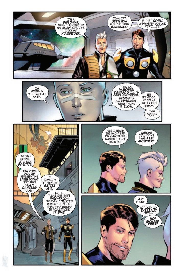 In the wake of EMPYRE, the political map of the galaxy has been redrawn – which means it’s time for a nice, peaceful diplomatic conference. As the new ambassador for the Utopian Kree, MARVEL BOY made a solemn promise to be on his best behavior… so how come his fellow diplomats are being murdered one by one – and it looks like he’s the killer?