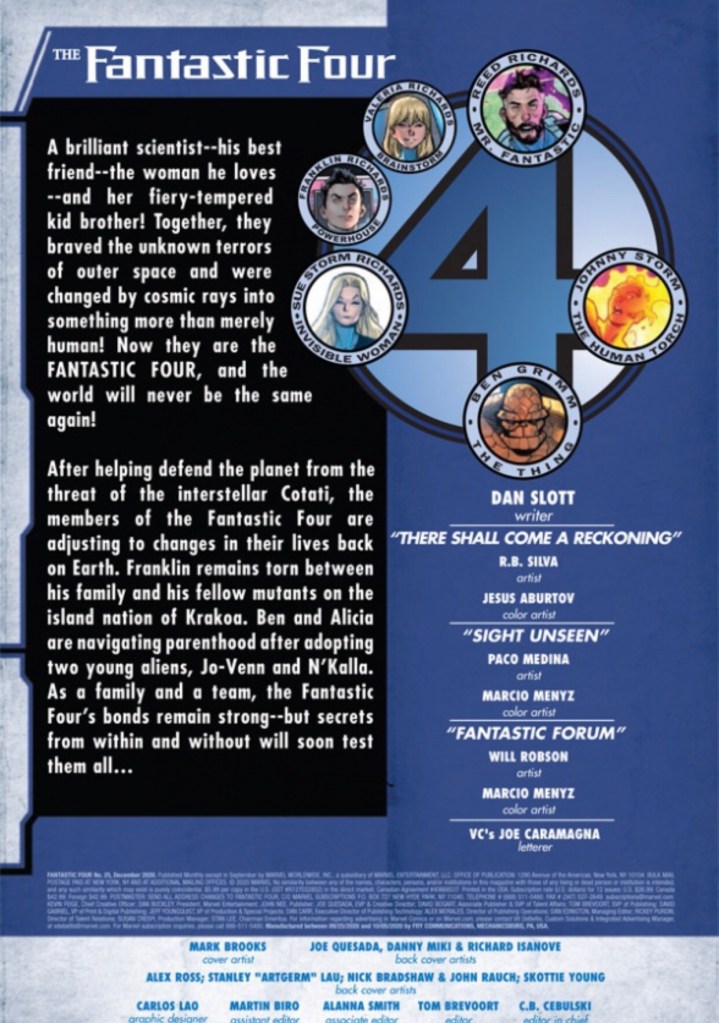 Everything in this book just flowed. Nothing felt too forced, except for that McGuffin I was talking about earlier, but we’ll get there. Slott’s books recently dragged on for what felt like forever. Nothing exciting was coming out of his stories and maybe it was just the rules of the trade. I have been on and off Marvel as a whole, but I have kept my eye on the first family because of how important this title has been in the since of fanbase, marketing for when this series debuted, and for the eventual appearance of these characters in Marvel’s MCU. I’d like one story, then hate the very next one because I felt nothing happened. Within the first 6 pages of this book, I’m in. It was one small piece of dialogue but it hit like a bag of bricks. It made me want more.